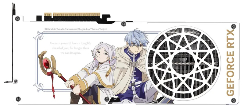 В основу новинки положена модель Gaming Trio. Однако компания добавила тематические надписи на вентиляторы, графику на кожух системы охлаждения и RGB-подсветку по мотивам аниме. Металлическая задняя пластина карты содержит скрытую графику, которая проявляется при нагреве ускорителя во время работы. MSI отмечает, что карта поставляется в тематической подарочной коробке, а в комплект поставки входит плед, также выполненный по мотивам аниме про эльфийку Фрирен.