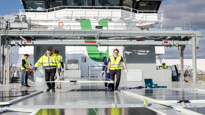 Обычная для суши солнечная ферма добралась до морских грузоперевозок. В Нидерландах рядовое грузовое судно впервые оборудовали солнечными панелями. Предварительно панели снабдили стандартным креплением для установки контейнеров на палубе. Получилась разборная конструкция, которая убирается за один рабочий день и может храниться на месте обычного 20-футового контейнера.