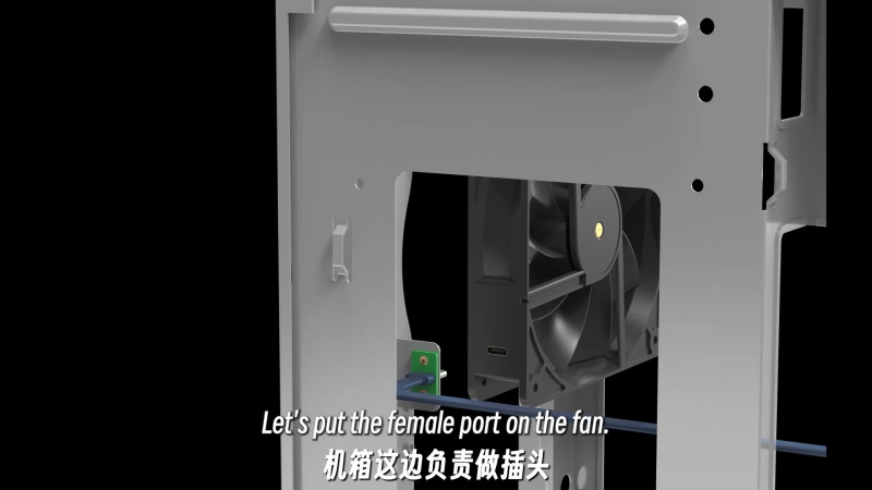 Корпус также должен предусматривать поддержку установки вентиляторов «без видимых» кабелей питания за счёт наличия предустановленных разъёмов питания для последних, а также RGB-концентраторов. Также есть опциональный вариант подключения питания вентиляторов полностью без проводов. Такая схема подойдёт, например, для установки передних вентиляторов.