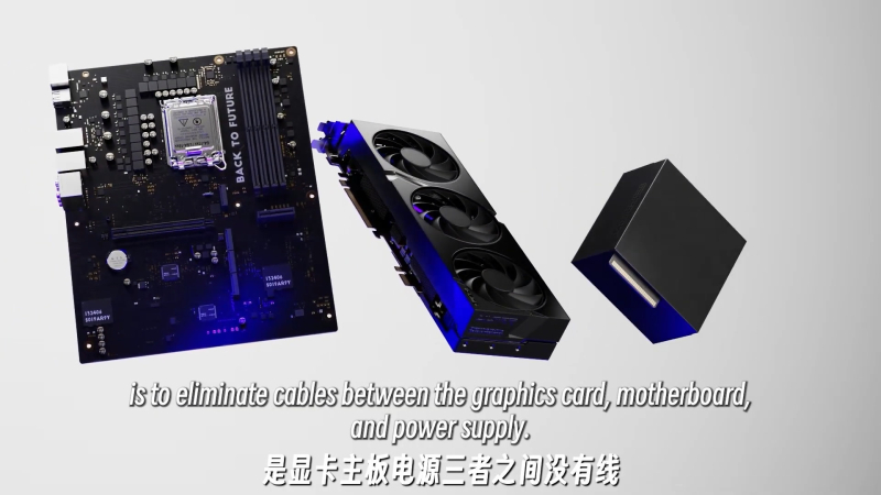 Блок питания BTF 3.0 расположен в системе справа от материнской платы, что позволяет согласовать схемы питания процессора и оставить место для установки верхнего радиатора СЖО. Видеокарты построены по гибридной модели: они сохраняют боковые разъёмы питания (12V-2×6), но могут быть оснащены небольшой платой-адаптером с ножевым разъёмом для сборок BTF. За счёт этого видеокарты будут совместимы не только с системами BTF, но и с обычными материнскими платами формата ATX.