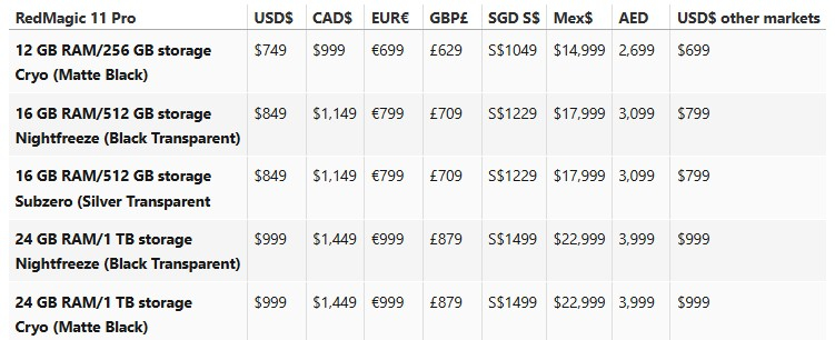 Рекомендованная стоимость устройства в конфигурации с 12 Гбайт ОЗУ и 256 Гбайт постоянной памяти составляет $699. В максимальной конфигурации с 24 Гбайт оперативной и 1 Тбайт постоянной памяти смартфон оценивается в $999. С ценами на остальные конфигурации можно ознакомиться в таблице выше. Интересно, что в США стоимость смартфона начинается с $749.