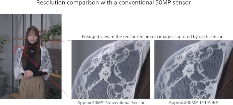Sony также обещает в Lytia-901 полнопиксельную автофокусировку, 4-кратный «гибридный» зум, объединение 16 пикселей для получения 12,5-мегапиксельных снимков и основанное на алгоритмах искусственного интеллекта полное восстановление данных о цвете для каждого пикселя. За расширенный динамический диапазон отвечают технологии Dual Conversion Gain-HDR (DCG-HDR) — нативная поддержка HDR на аппаратном уровне; а также Hybrid Frame-HDR (HF-HDR), предполагающая множественную экспозицию и диапазон более 100 дБ.