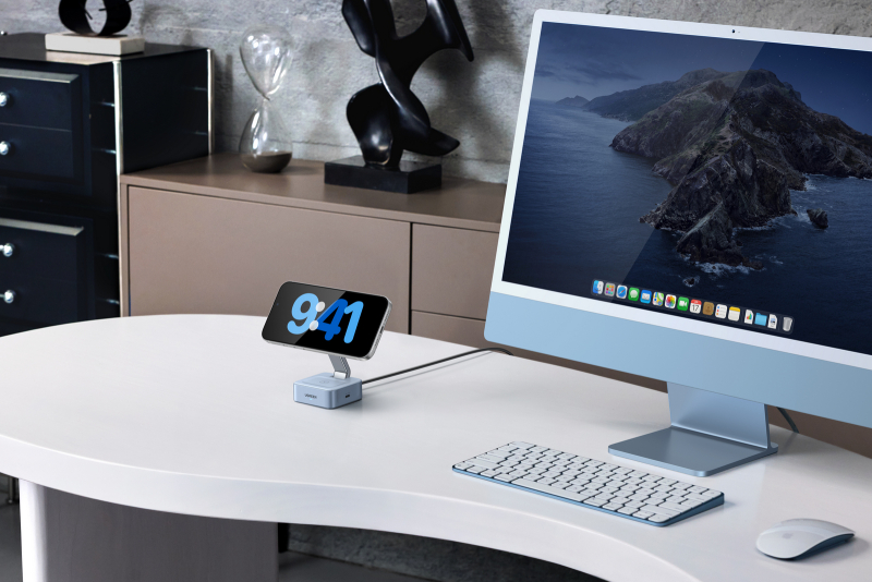 Что касается настольных зарядных станций, то здесь у UGREEN есть два варианта. Для тех, кто ценит компактность и стиль, предлагается беспроводное магнитное зарядное устройство 2-в-1 UGREEN MagFlow. Оно впишется и в рабочий кабинет, и на прикроватную тумбочку: устройство выполнено в компактном корпусе и обладает складной конструкцией, которая позволяет с помощью металлического шарнира поворачивать зарядную площадку на 360 градусов и регулировать угол наклона до 70 градусов.