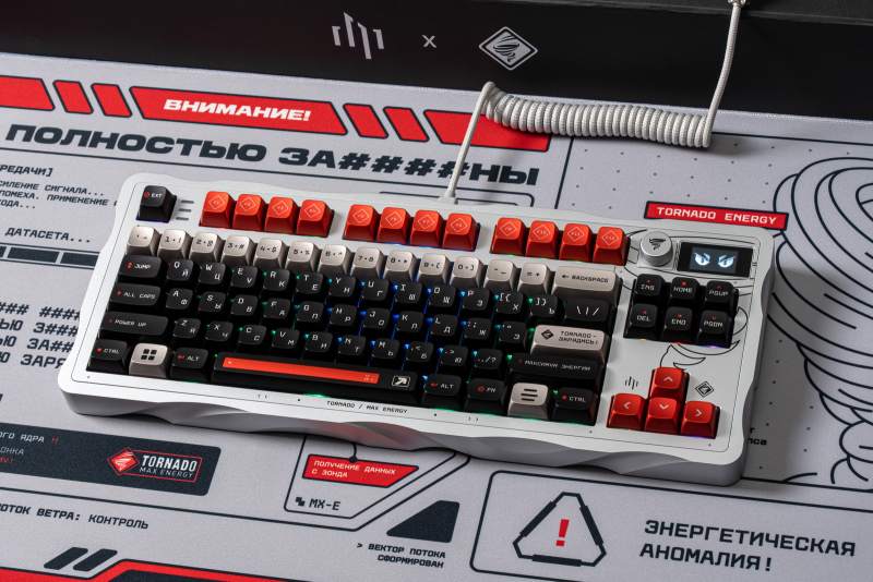 Компания «Дарк Проджект» совместно с Tornado Max Energy представили игровую клавиатуру со встроенным OLED-дисплеем, который «оживает» при взаимодействии с пользователем. Клавиатура собрана в титановом корпусе. Устройство выпущено в единственном экземпляре и оценивается в 500 000 рублей.